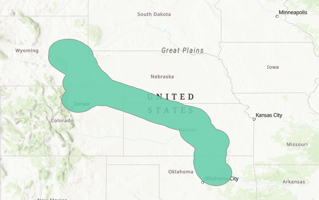 The geographic scope includes the areas of interest for Colorado, Kansas, Nebraska, Oklahoma, and Wyoming.