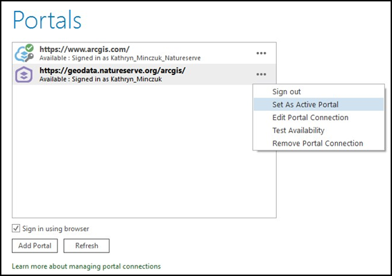 - The portal will be added to the list you see on this page. Click on the "..." next to the portal connection item and then click on "Sign In" (Figure 10)