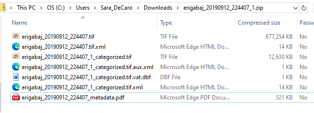 - Open up to your downloads folder and unzip the contents (Figure 21). Here you will see the TIFF file and metadata pdf.