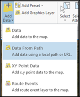 ESRI currently supports data streaming from the Geodata Portal within ArcGIS Pro. For use of the dataset in ArcGIS Pro, users can either add data using a URL or use portal item navigation. Instructions for both processes are described below.