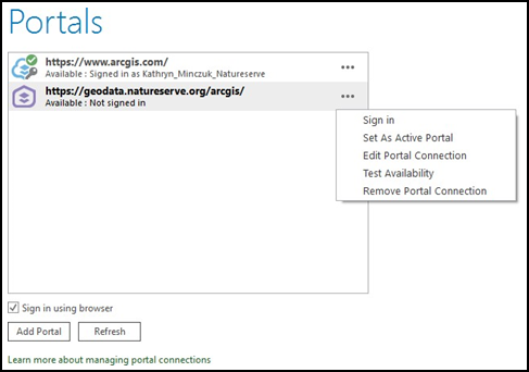 - The portal will be added to the list you see on this page. Click on the "..." next to the portal connection item and then click on "Sign In".