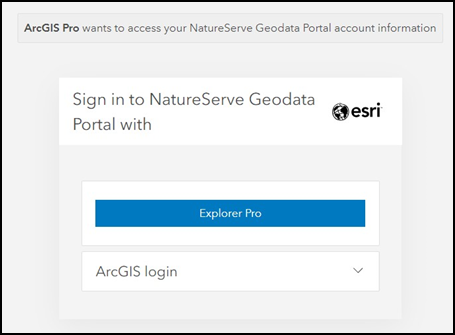 - Navigate to the NatureServe Geodata Portal and sign in using your Explorer Pro credentials.